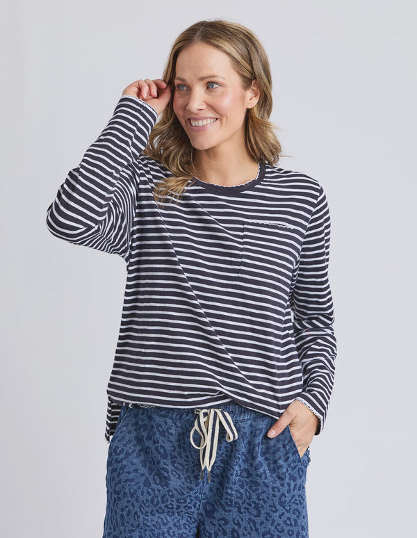 Drea Long Sleeve Tee- Navy